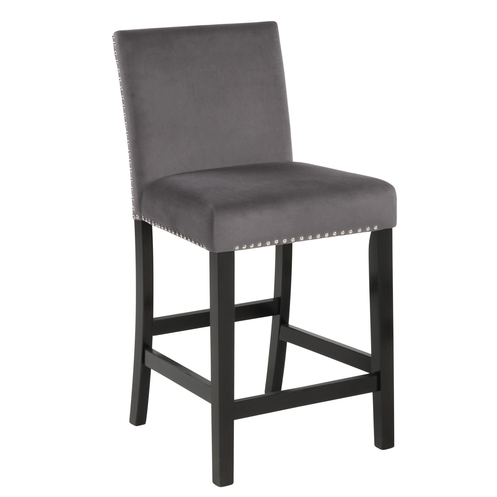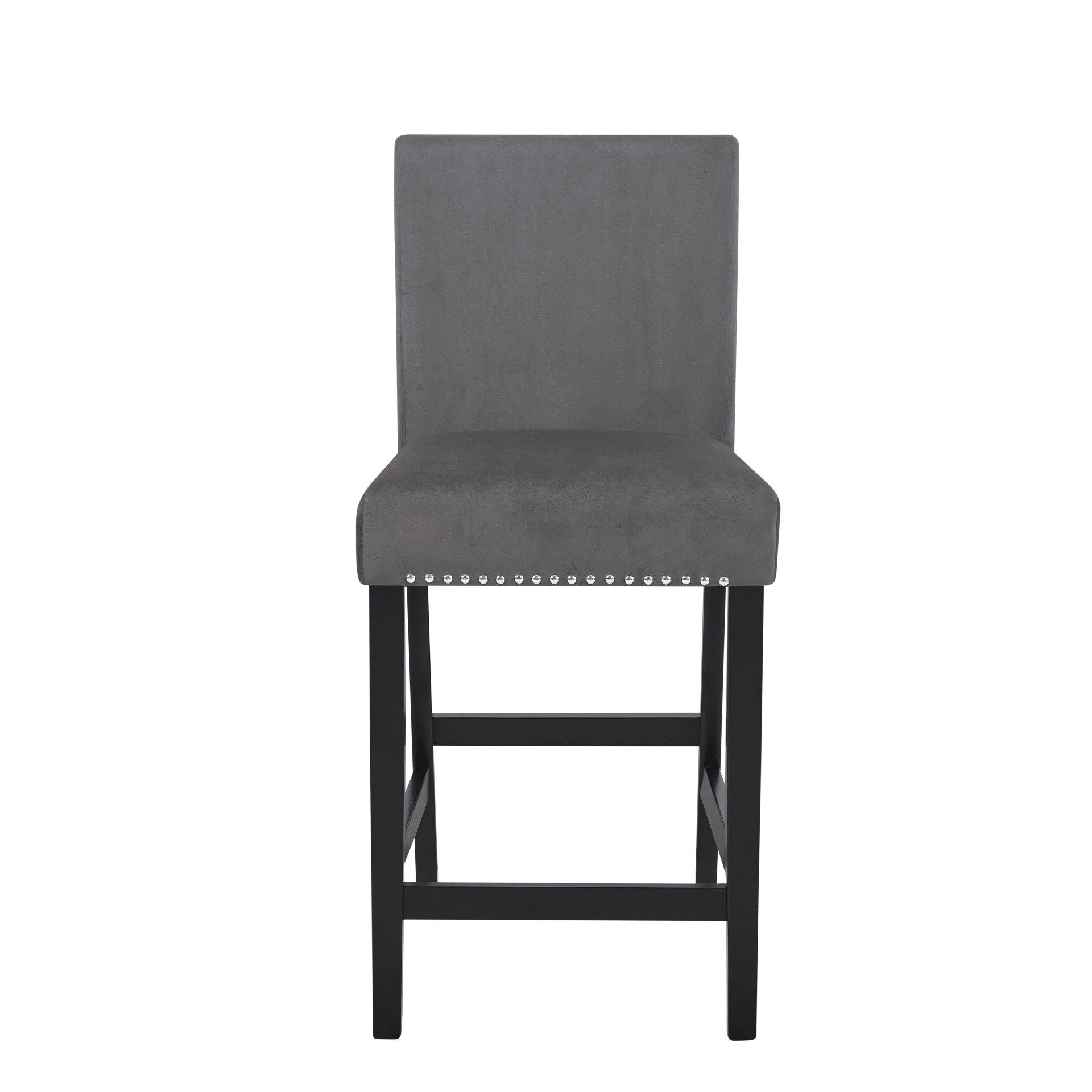 Introducing the New Classic Furniture Celeste Counter Dining Chair – a set of two chairs designed to combine style, comfort, and durability seamlessly. Crafted with solid Rubberwood legs and base stretchers that double as footrests, these counter chairs ensure a strong and stable seating solution for your elevated dining experience. The 100% polyester velvet upholstery covers sumptuous memory foam cushions, offering both softness and durability for an easy-care, luxurious seat. The espresso legs, paired with glimmering silver nailhead trim, add a touch of contemporary glamour to the plush velvet seating. Setting up these counter chairs is a hassle-free experience with the included easy-to-follow assembly instructions. Elevate your dining space with the Celeste Counter Dining Chair – where quality construction meets comfort and modern style effortlessly.