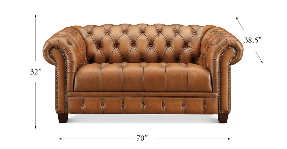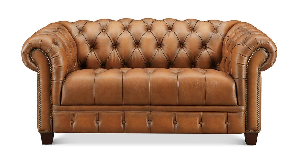 The York collection draws inspiration from the classic chesterfield design, transforming furniture into a piece of art that exudes grand elegance in any space. This collection showcases stunning button-tufted back cushions, beautifully emphasized by padded and tufted high rolled arms, all supported by solid wood bun feet. With its refined details and timeless aesthetic, the York collection brings a touch of sophistication and grace to your living environment.