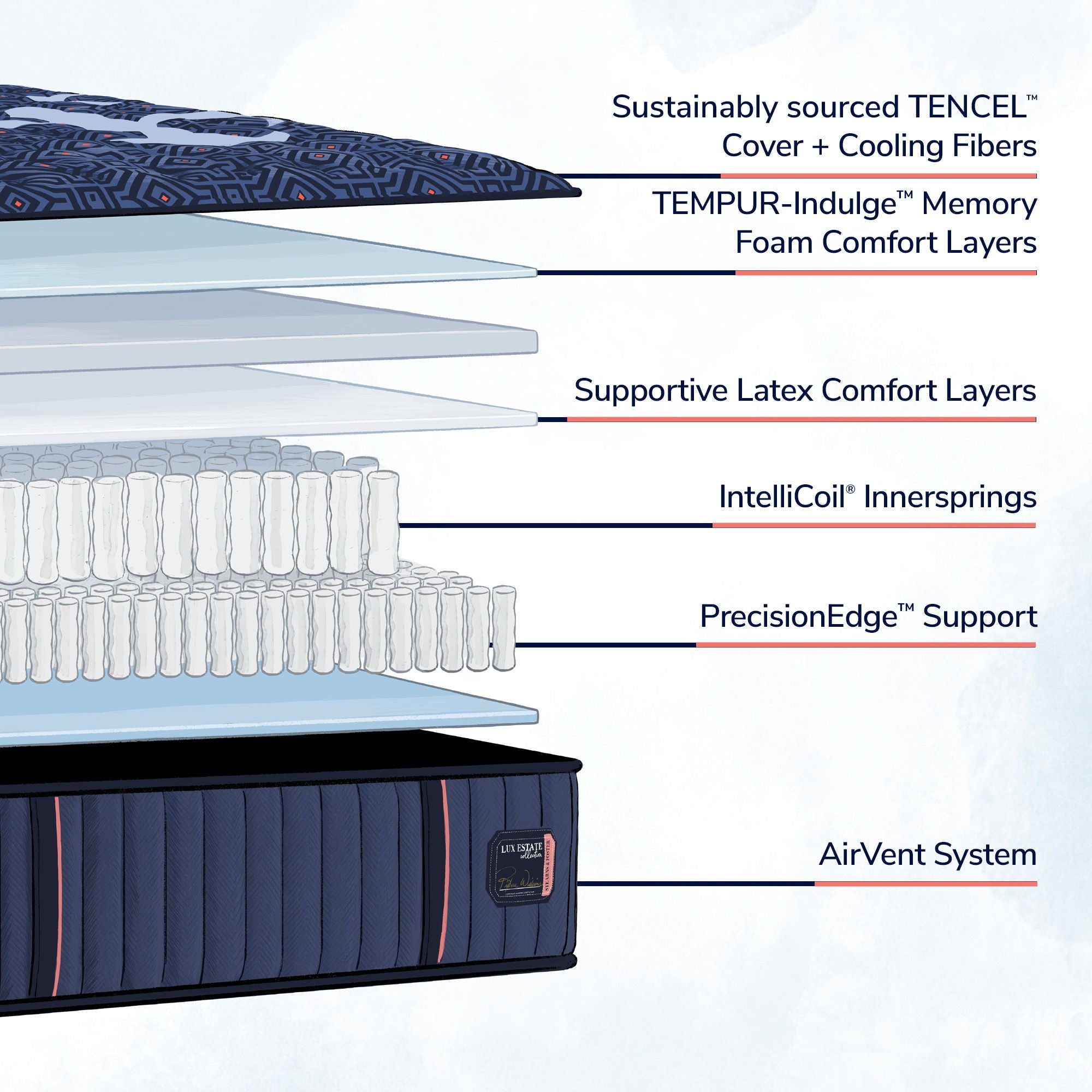 The Stearns & Foster Lux Estate Collection provides an elevated level of comfort and support, with the added benefit of features to help keep you cool, all night long.