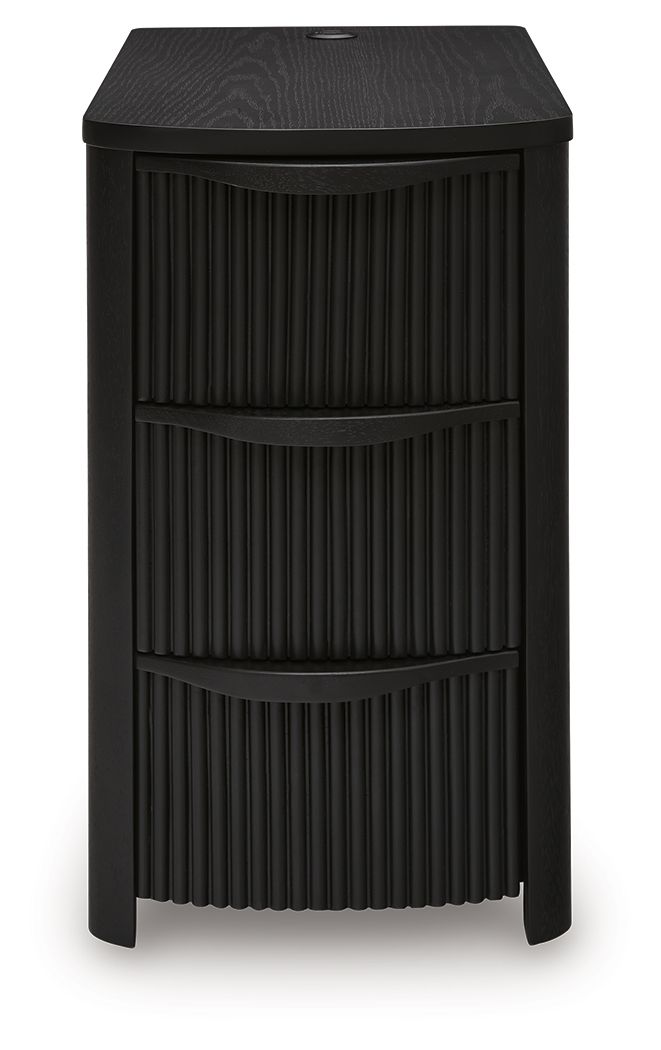 This chairside end table elevates your living room with both sleek style and must-have modern function. Reeded detailing lends a contemporary appeal, while subtly integrated drawers stow essentials with ease. USB ports round out the design, allowing you to keep devices within reach while charging.